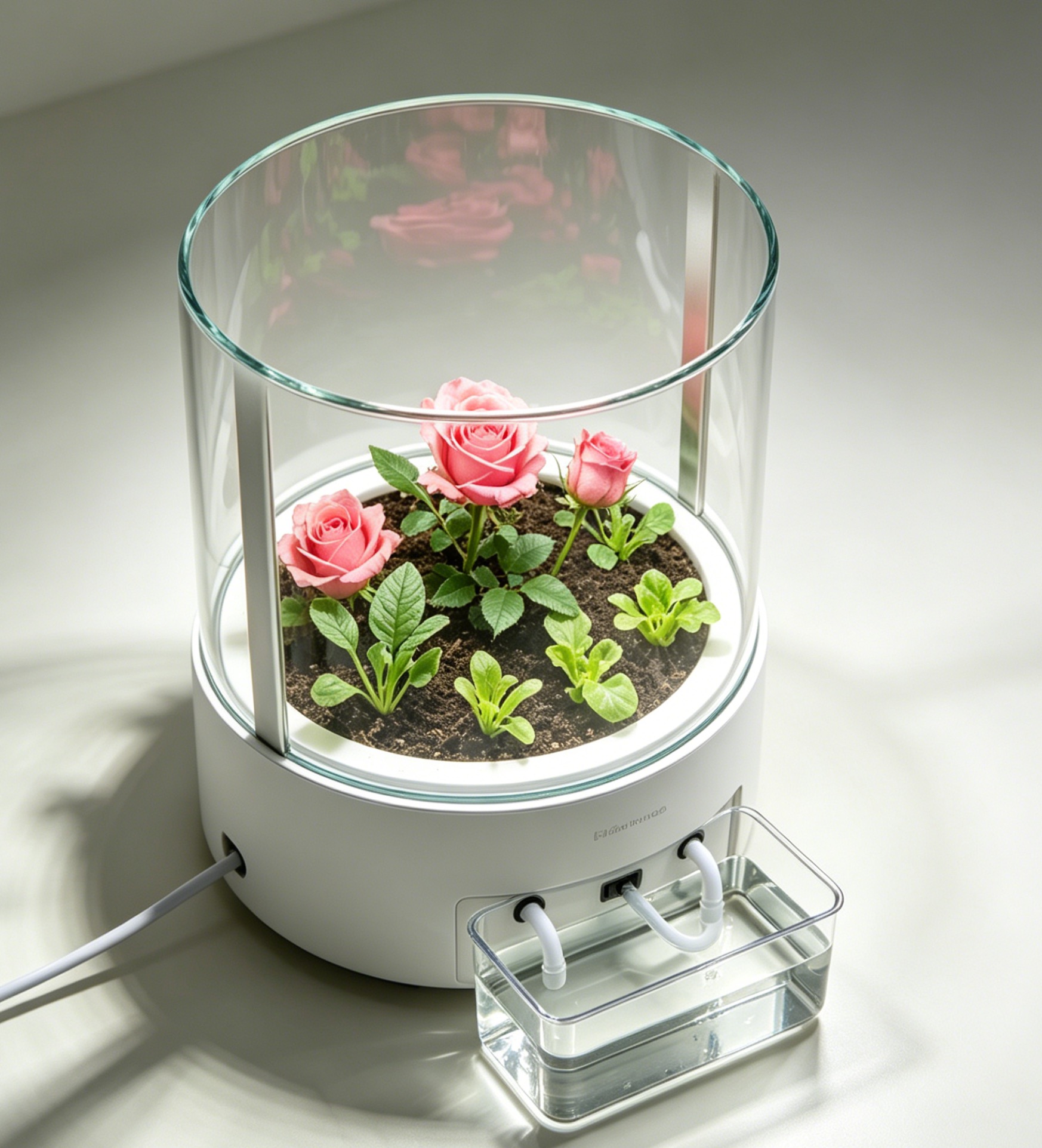 - 规格:可拼接设计,单组2层,最多可拼接4层,适配不同桌面大小 - 核心功能:分层补光、独立水肥控制,可单独控制每一层的种植参数,支持多品种同时种植 - 适配作物:芽苗菜、小型香草、微型生菜 - 亮点:可生长扩展(按需加层)、极简设计,适配企业办公桌面、学校课桌,可作为科普小型教具